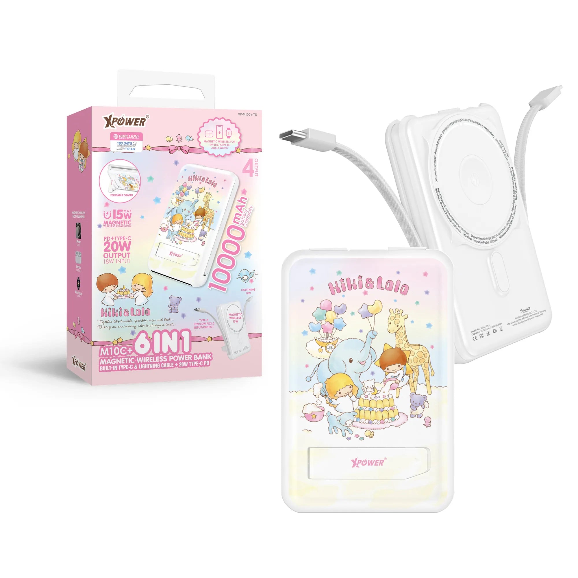 🎀XPower x Little Twin Stars M10C+ 6合1 10000mAh多功能迷你20W PD3.0+ 磁吸無線快充 充電器