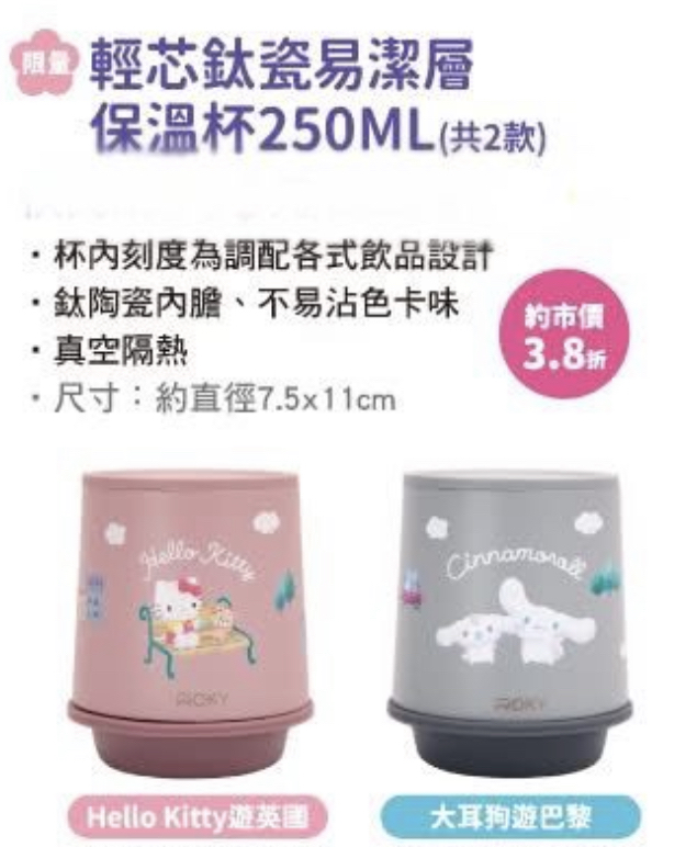 Hello Kitty限量 輕芯鈦瓷易潔層保溫杯250ML