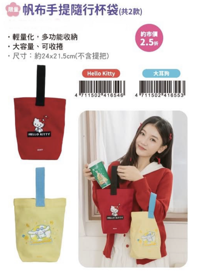 Hello Kitty限量帆布手提隨行杯袋