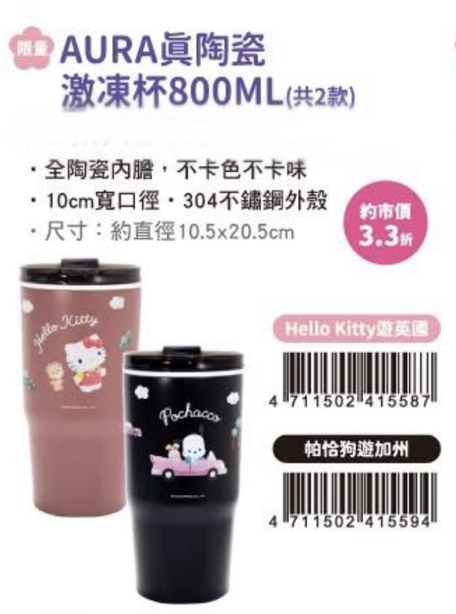 #新品推介🥳🤩 #超商限量唔好錯過😍 #好鬼正💕#唔買真係對唔住自己🤣🤣 🇹🇼台灣超商限購 三麗鷗 限量 WOKY系列💕 ⛔️截單日期:1月16日✂️(晚上11:00) 📦到貨日期:預計2月中至3月尾📦 📍網上24小時自助下單👍🏻 #立即下單:🌐 🈹團購優惠: 三麗鷗-限量 AURA真陶瓷激凍杯800ML(共2款) Hello Kitty, PC狗 💰$189 三麗鷗-限量 輕芯鈦瓷易潔層保溫杯250ML(共2款) Hello Kitty,玉桂狗 💰$218 三麗鷗-限量 極簡輕量陶瓷保溫瓶(純鈦濾芯組)T580ml(共2款) 布甸狗,玉桂狗 💰$299 三麗鷗-限量帆布手提隨行杯袋(共2款) Hello Kitty,玉桂狗 💰$99 三麗鷗-限量造型海綿 (共2款) Hello Kitty,玉桂狗 💰$49 🇹🇼台灣超商限購三麗鷗WOKY系列 🔻🔻🔻🔻🔻🔻🔻🔻🔻🔻🔻🔻🔻🔻🔻 ⚠️所有貨品一經落單,不接受任何理由退款/取消/更改,敬請慎重考慮清楚才下單。 ⚠️ 圖片可能因顯示器不同而出現色差情況,所有商品皆以實物為準。