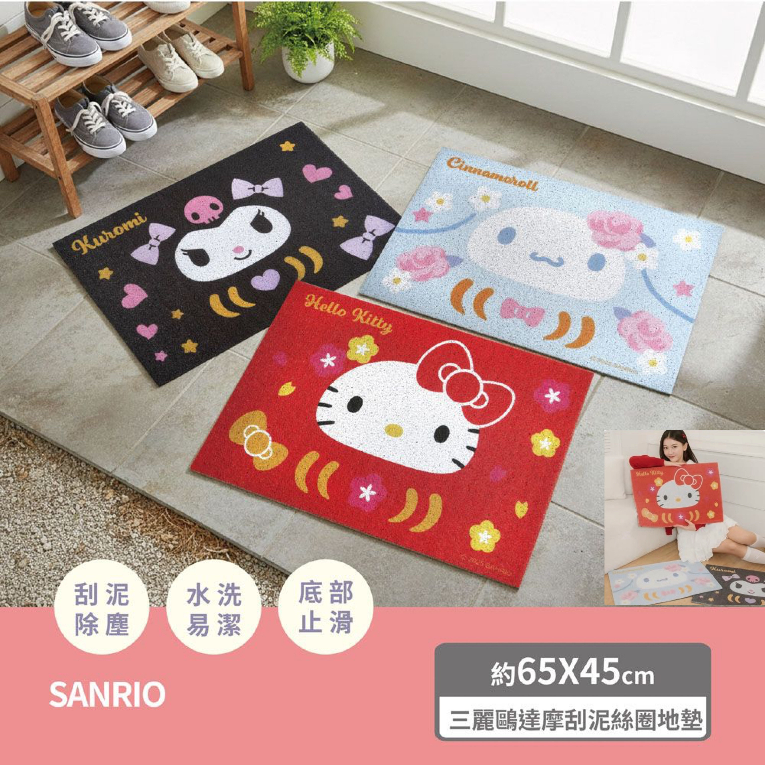 三麗鷗-限量達摩刮泥絲圈地墊(共3款)