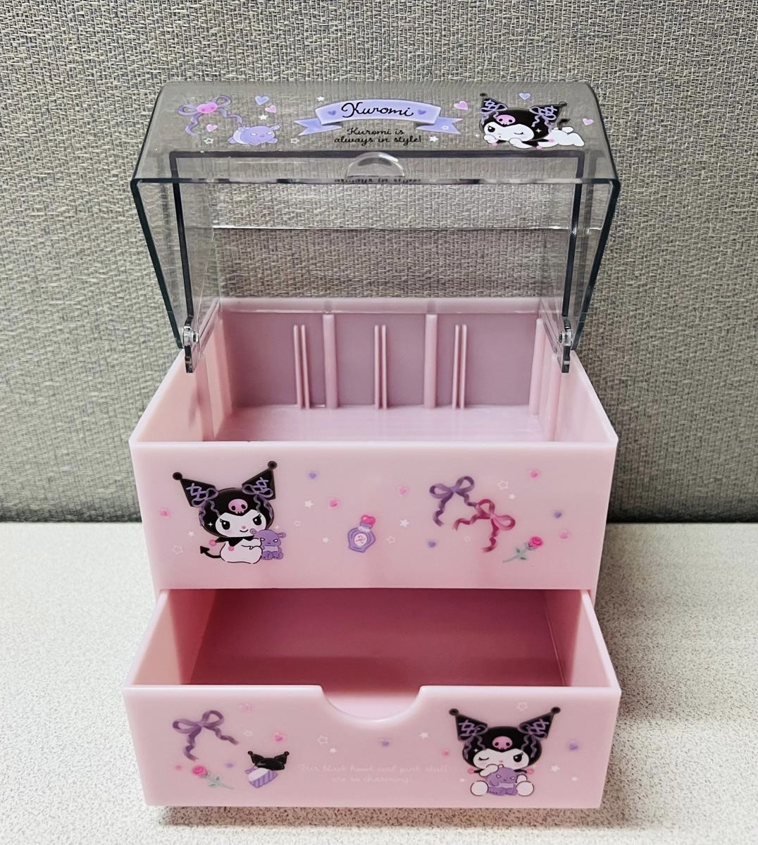 ‼️現貨發售‼️ 🎌日本直送🎌Kuromi 頂揭蓋收納盒($138 超靚😍 Size 約高H16.5×W13×D12cm 📍網上24小時自助下單👍🏻 #立即下單:🌐 😍~內有分隔板可移動可放化妝品指甲油、唇膏、棉花等等….🥳 😍~仲有個方便嘅抽屜可以收納首飾🤩 ‼️數量有限,售完即止‼️ 🔻🔻🔻🔻🔻🔻🔻🔻🔻🔻🔻🔻🔻🔻🔻 ⚠️所有貨品一經落單,不接受任何理由退款/取消/更改,敬請慎重考慮清楚才下單。 ⚠️ 圖片可能因顯示器不同而出現色差情況,所有商品皆以實物為準。
