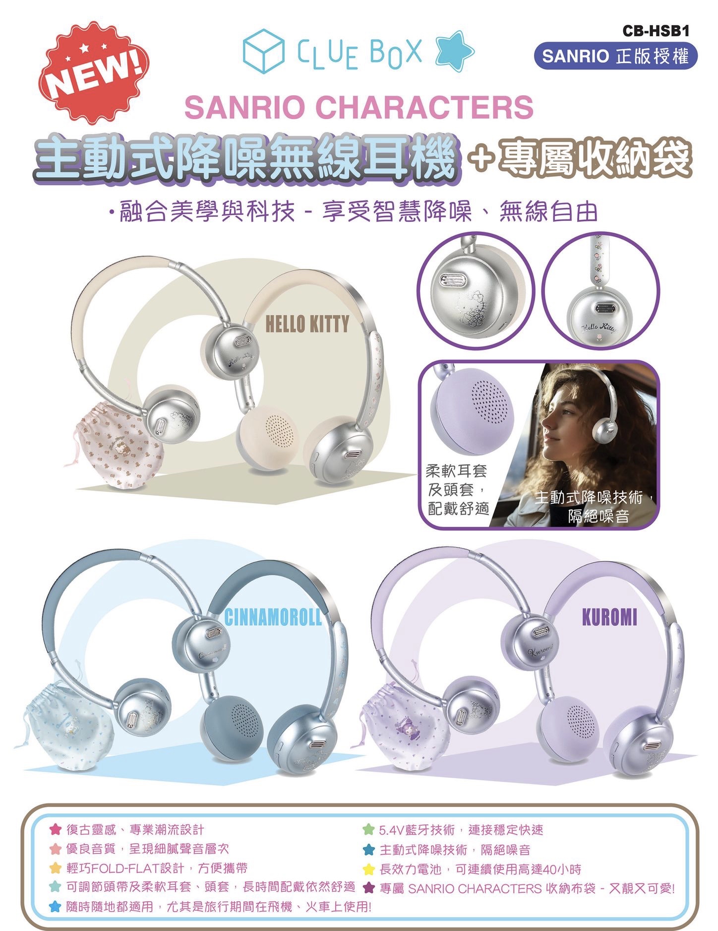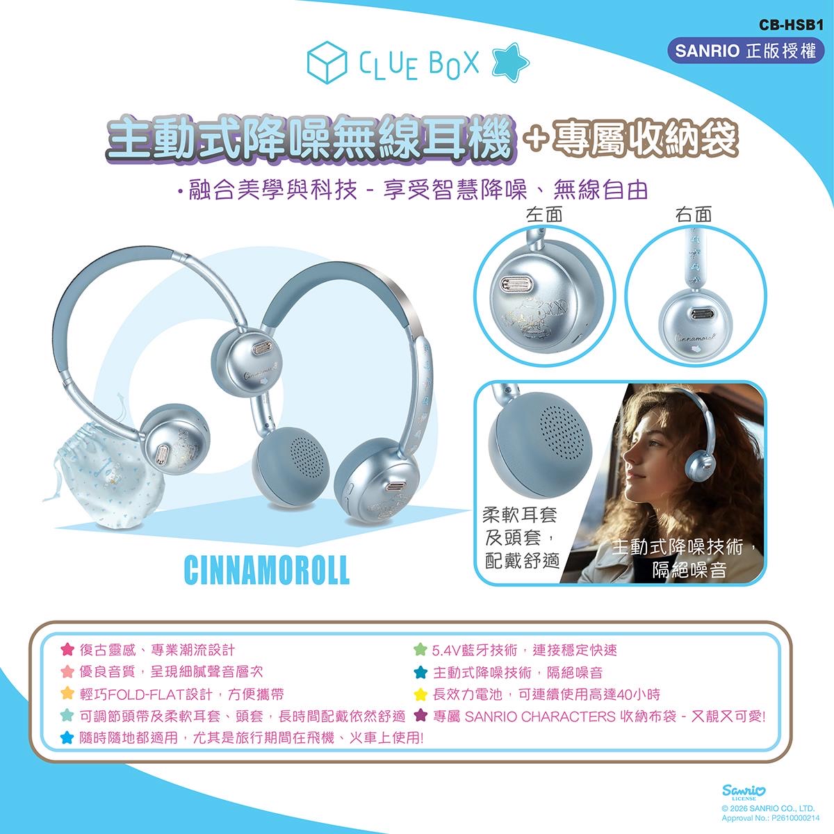 CLUE BOX - CB-HSB1 - SANRIO CHARACTER 主動式降噪無線耳機+專屬收納袋 - 正式登場!