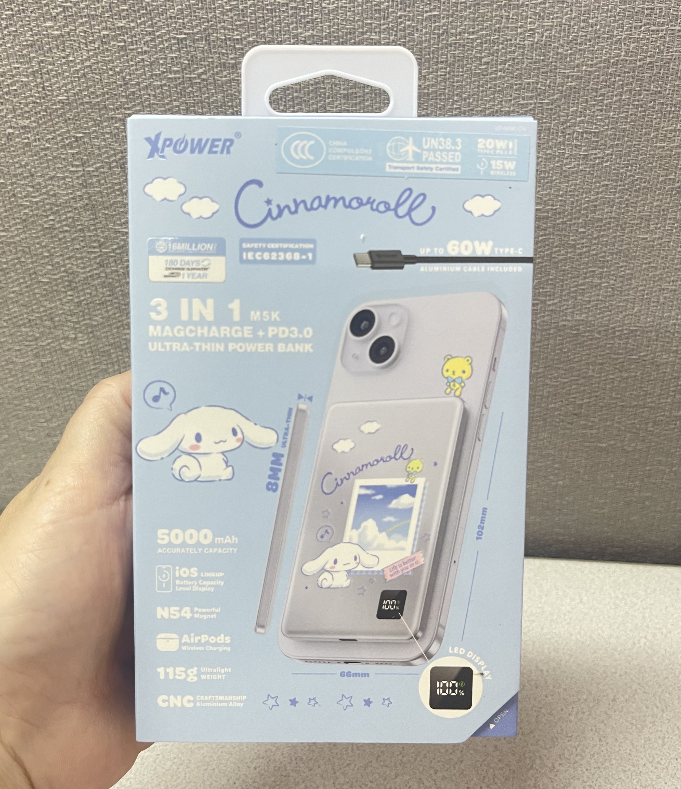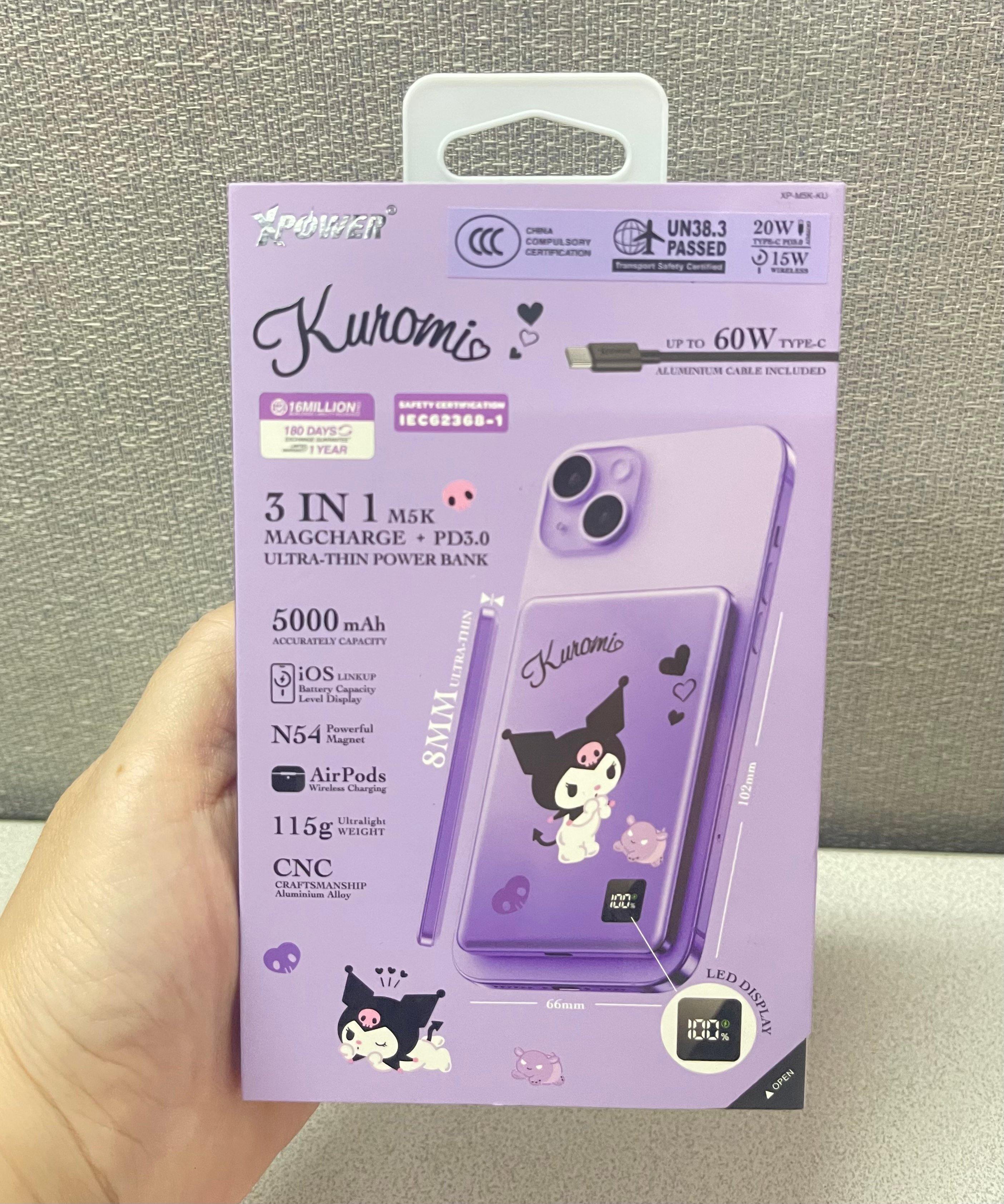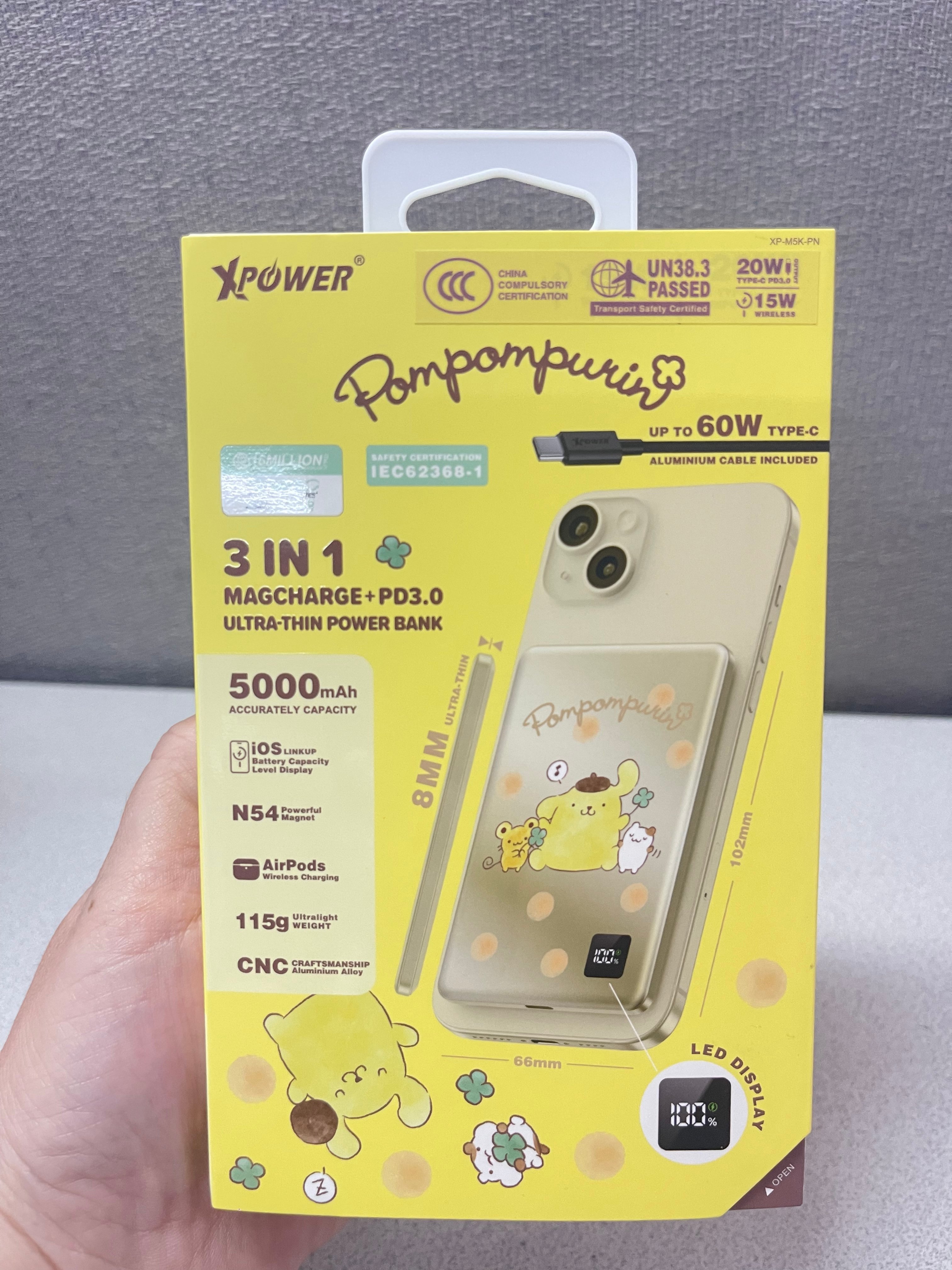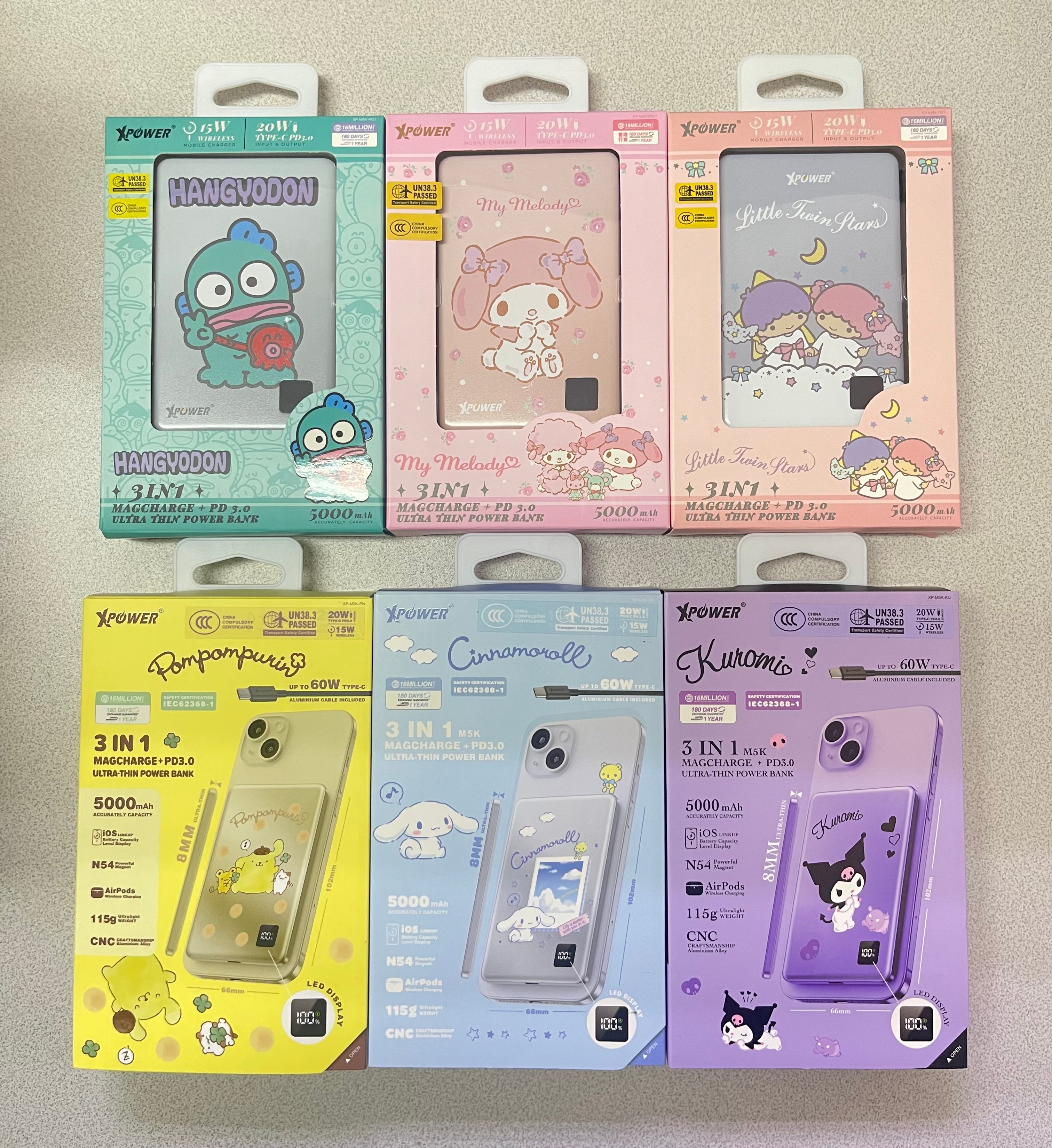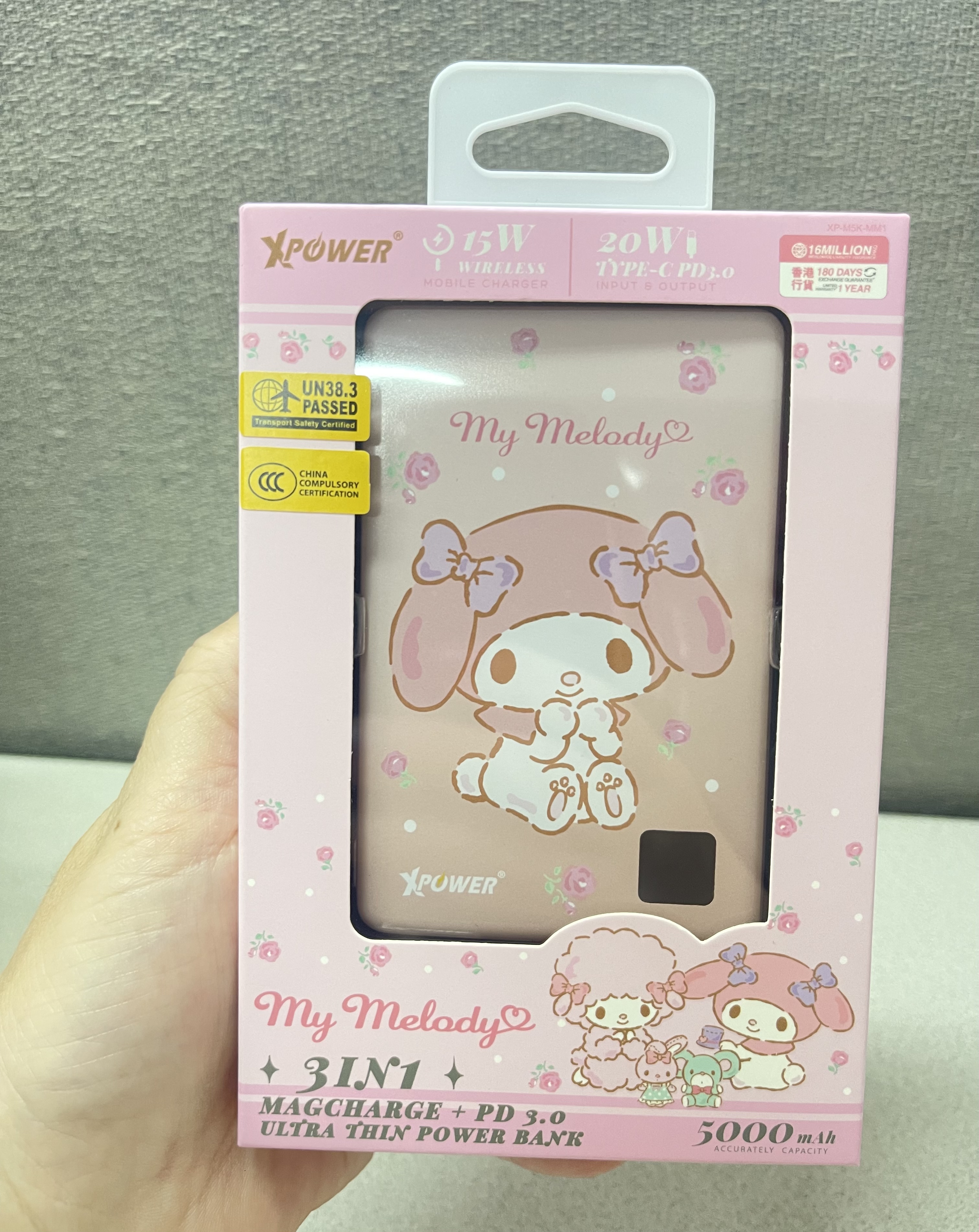 ‼️現貨發售‼️ 🎀(3C認證版) XPower x Sanrio 3合1磁吸+PD3.0 5000mAh鋁合金移動電源 (M5K) 超靚😍 📍網上24小時自助下單👍🏻 #立即下單:🌐 https://forevergift.store/i/VJjNIrgAA ❤️~PD3.0 快充 × 5000mAh 容量:支援最高 20W 快充,日常補電剛剛好。 ❤️~3合1多功能設計:磁吸無線 + Type-C 輸出 + Type-C 輸入,靈活應對各種設備。 ❤️~3C 安全認證:具備過熱、過壓、過流、短路等防護機制,使用更安心。 • 2輸出: 磁吸無線充(最大15W) / Type-C(20W PD 3.0) • 可快充iPhone15/16, Plus, Pro及Pro Max等,支援iOS電量顯示 • Type-C 20W PD 3.0輸入及輸出 • 支援AirPods無線充電 • 不虛標真5000mAh石墨烯負極100%純鈷電池,加強散熱效能 • 僅重115g及超薄8mm,迷你體積,輕巧便攜 • 102mm完美Fit位,不凸出、不擋鏡頭 • N54強力釹磁鐵,150%加強吸力 • 超方便一啪即充 • CNC切割圓角鋁合金機身 • LED電量顯示 • 附送60W鋁合金Type-C線 • 安全認證:CE,FCC,ROHS,IEC62368-1 • 安全保護裝置: 短路/過充/過放/過熱/過流保護 • 尺寸: 102 x 66 x 8(mm) & 115g 🉐香港行貨 1年保養 #快閃現貨🤩🤩 #新品推介🔥🔥#這波不衝動真的會後悔了🤣🤭#通過3C安全認證 🈴🉐#可攜帶上飛機💯#全球最薄🥳 #手快有手慢冇🤣😂 🔻🔻🔻🔻🔻🔻🔻🔻🔻🔻🔻🔻🔻🔻🔻 ⚠️所有貨品一經落單,不接受任何理由退款/取消/更改,敬請慎重考慮清楚才下單。 ⚠️ 圖片可能因顯示器不同而出現色差情況,所有商品皆以實物為準。